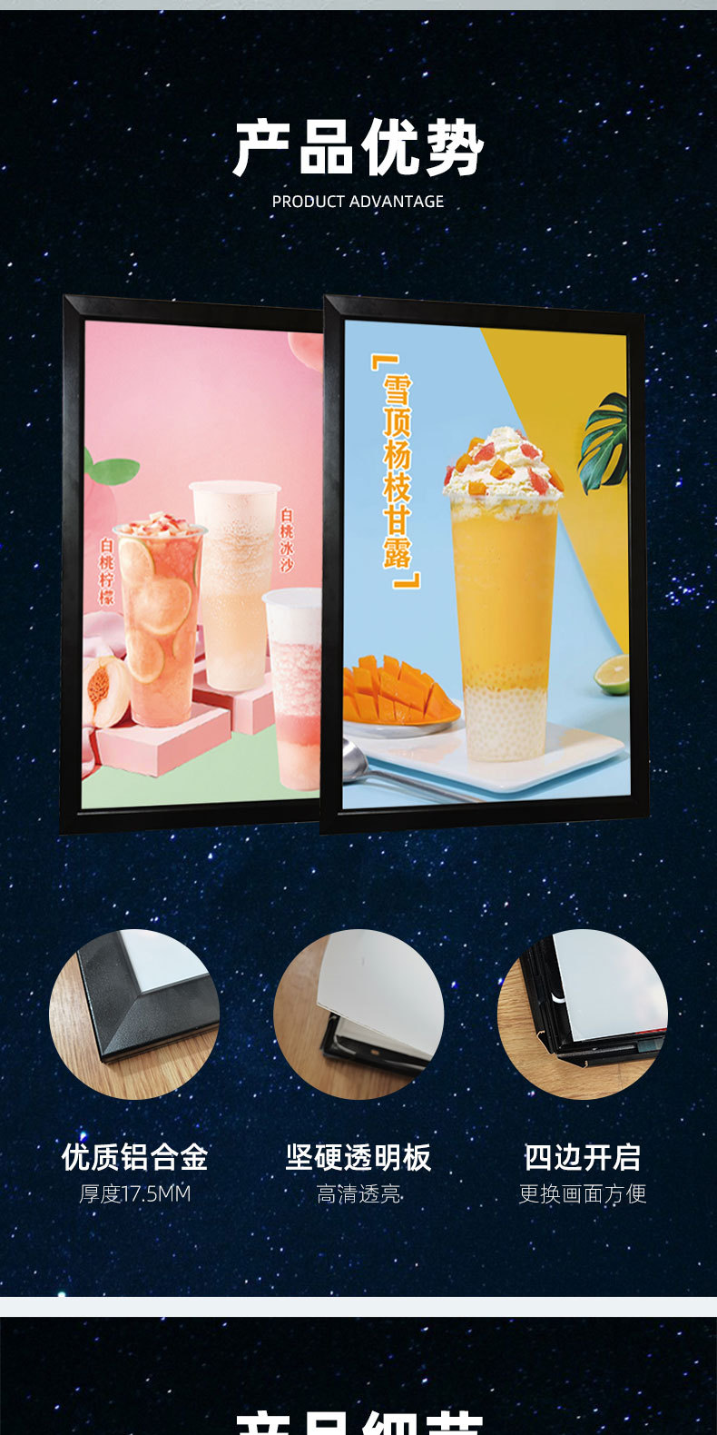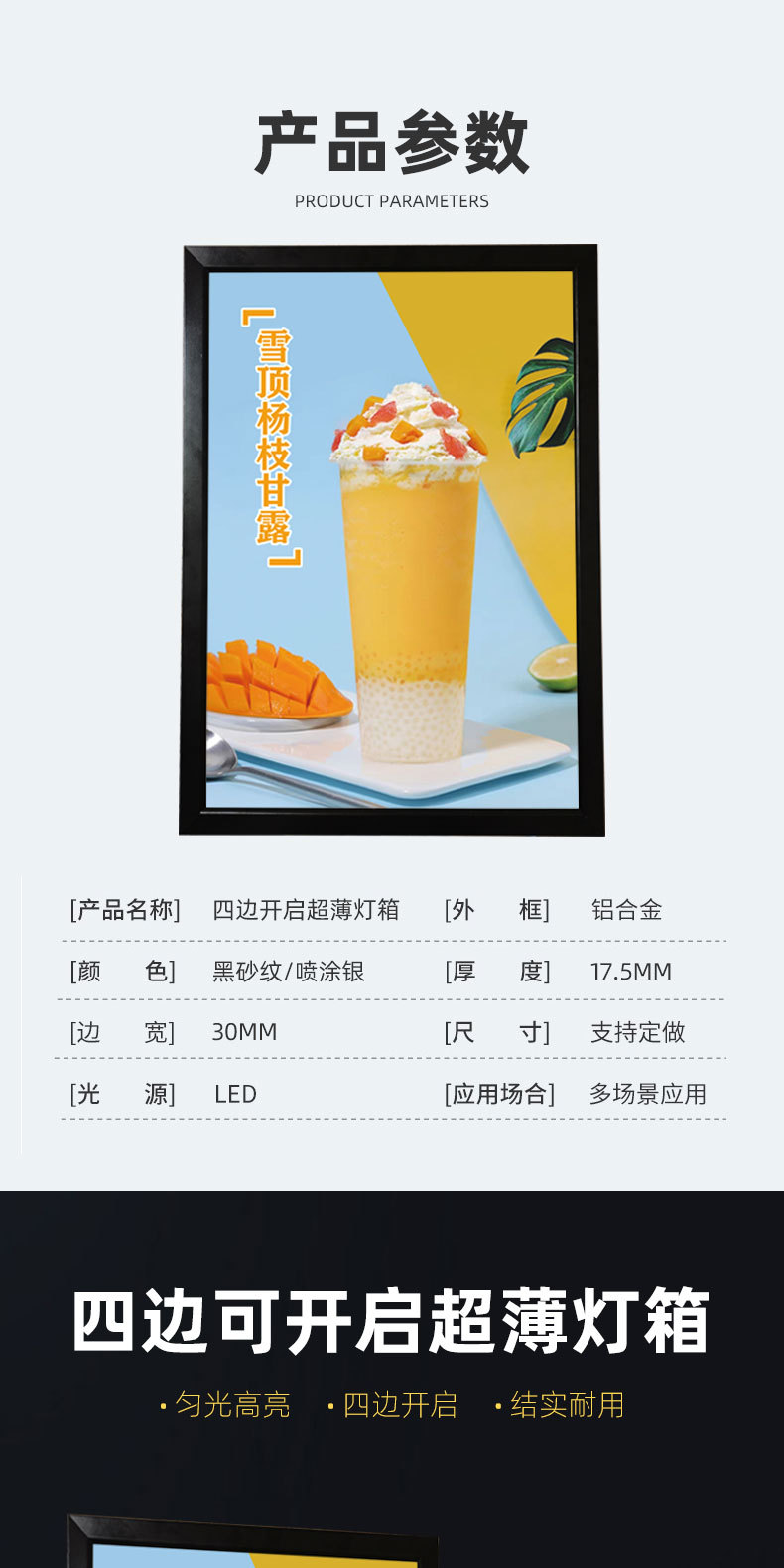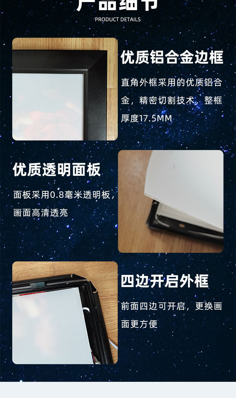 四边开启挂墙式led灯广告牌铝合金超薄灯箱商超餐厅宣传海报相框