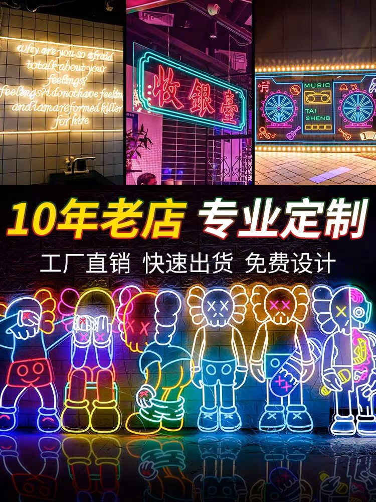 霓虹灯发光字定制led灯带装饰ins网红酒吧背景墙造型灯广告招牌