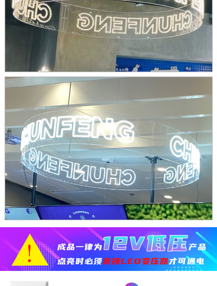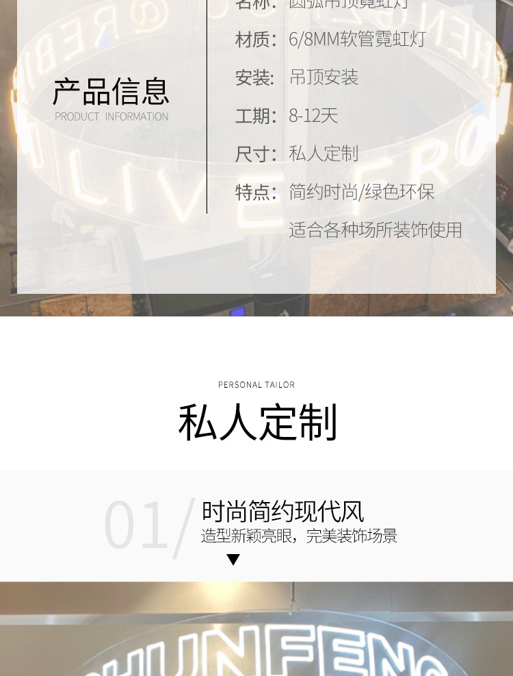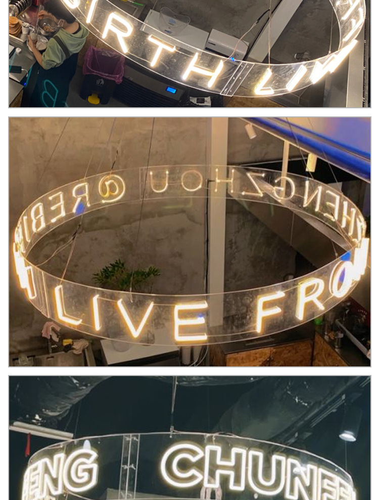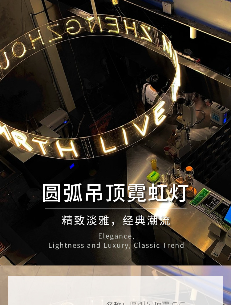 亚克力霓虹灯圆环发光字网红风吊灯弧造型装饰圆形酒吧广告牌定制