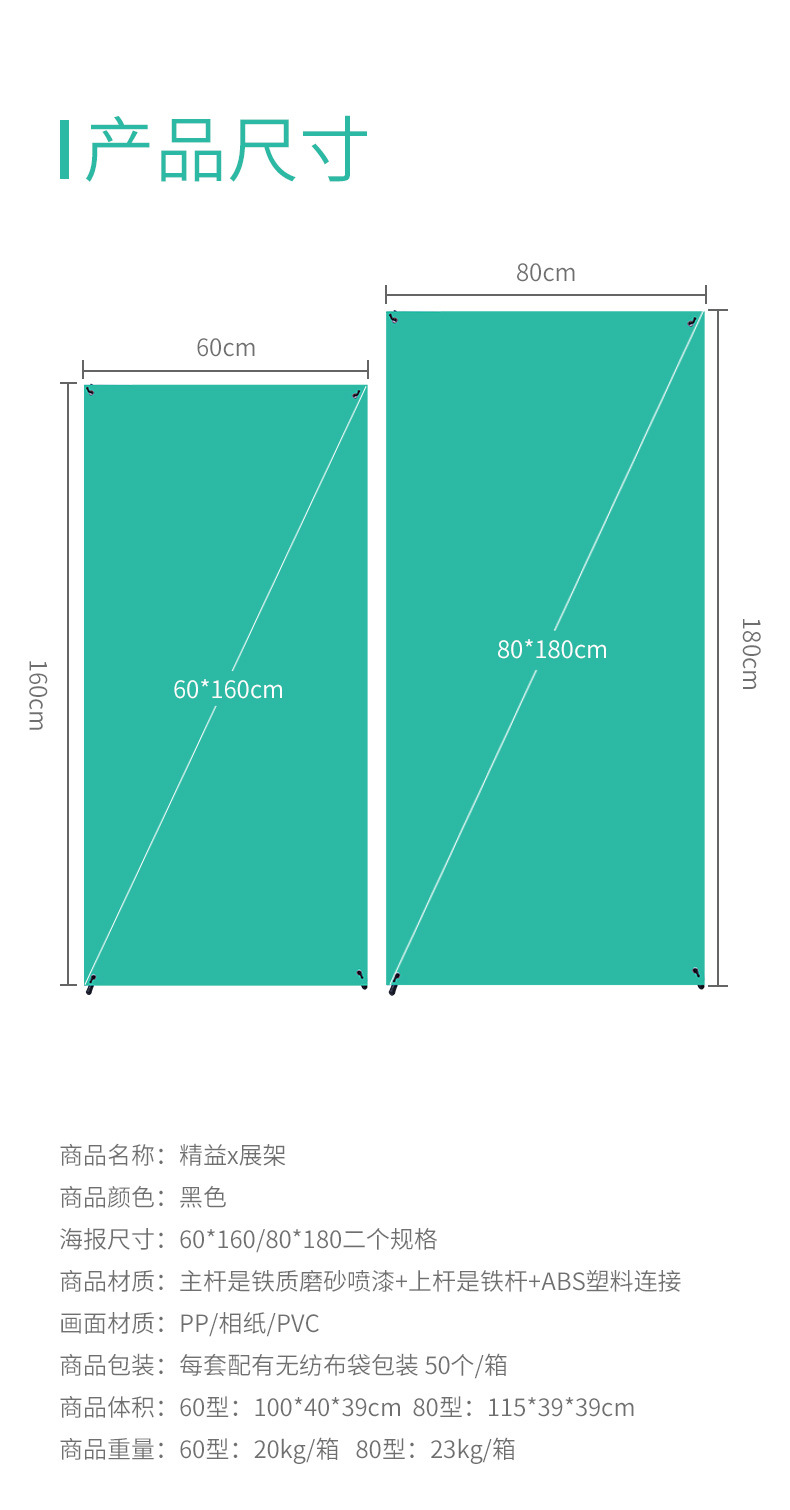 厂家批发精益X展架60*160易拉宝海报架80*180广告展示架画面制作