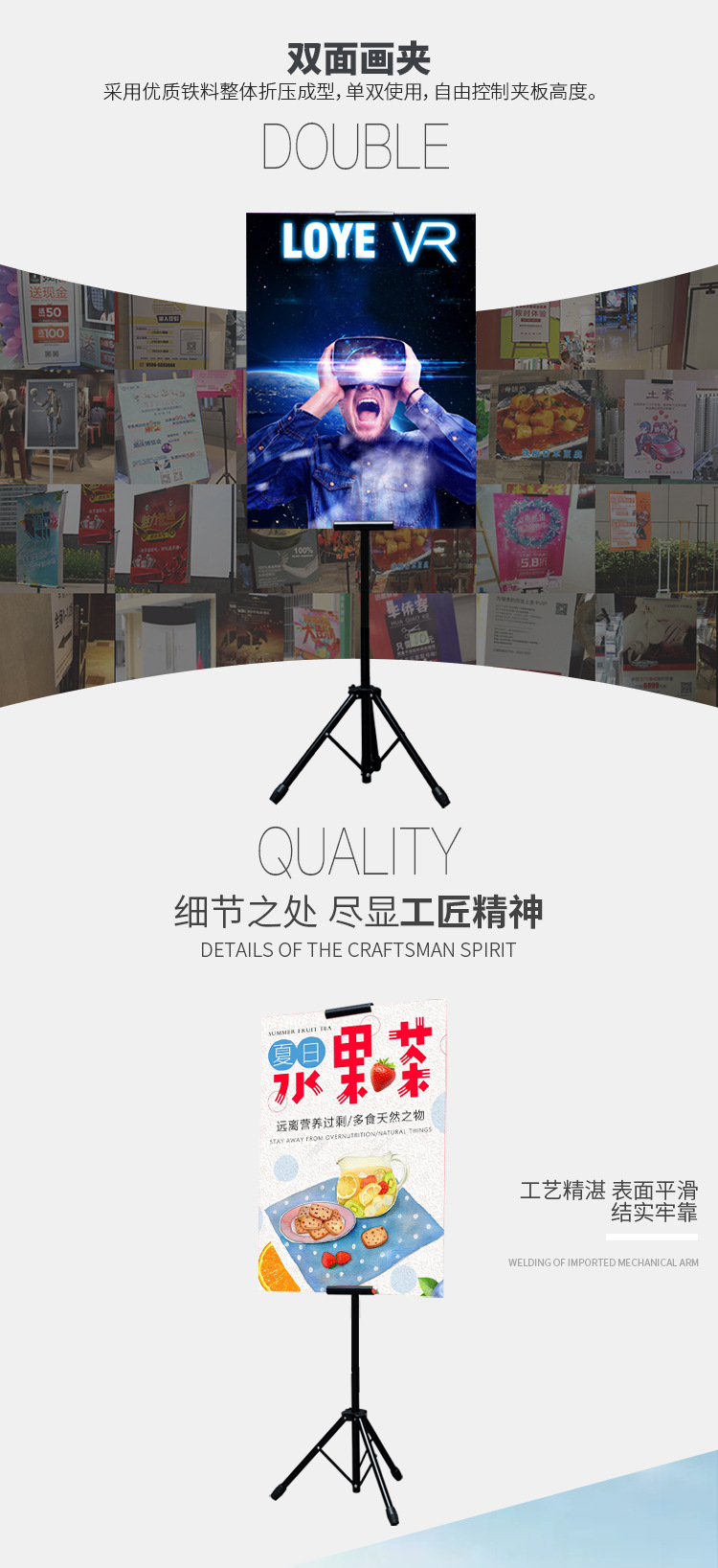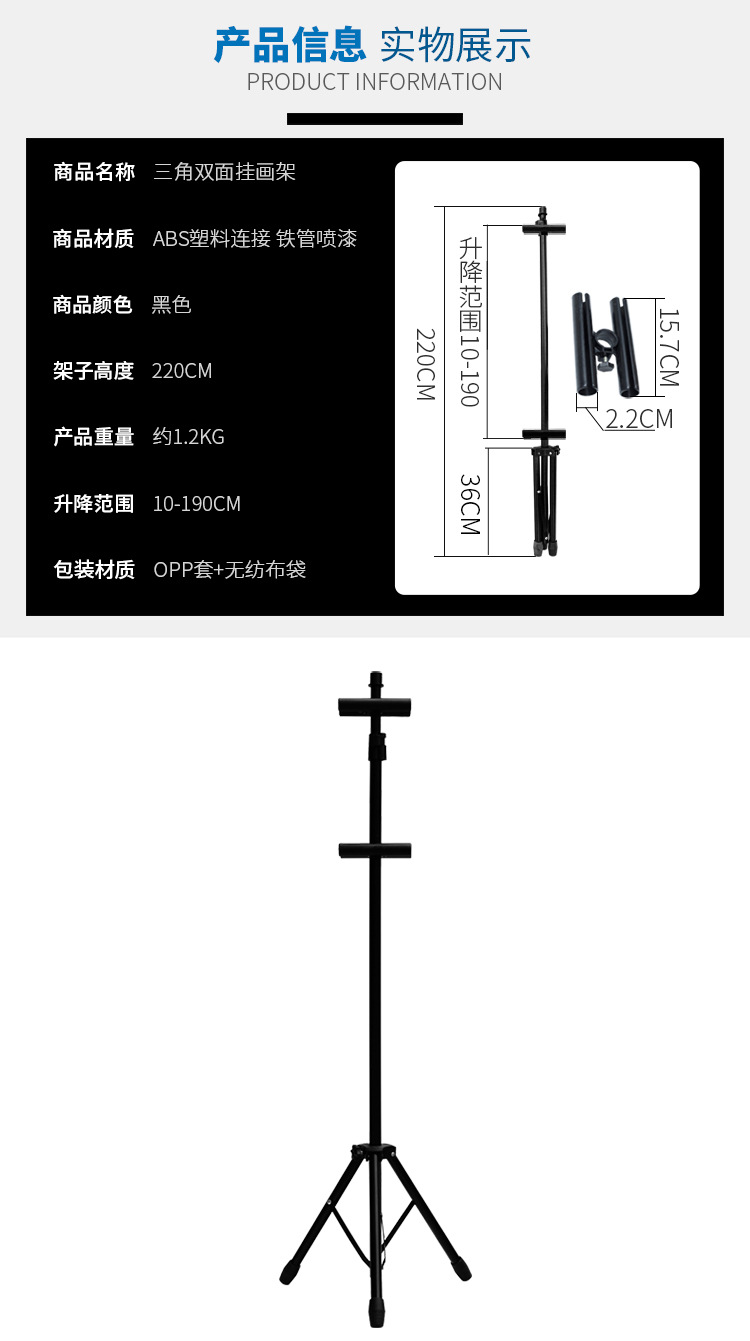 厂家批发铁质升降三角挂画架 双面kt板展示架广告牌pop海报架立式