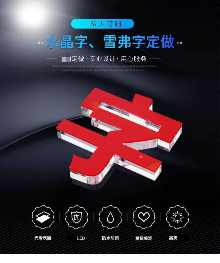 led金属背光字不锈钢包边发光字门头亚克力迷你水晶背发光字招牌